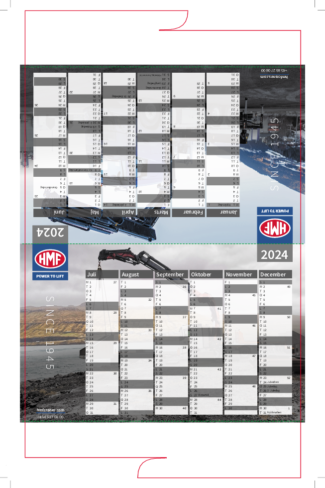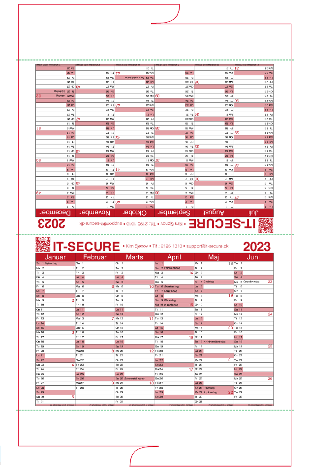 - Halvårs bordkalender; stanset løsblad trykt på 350 g Silk